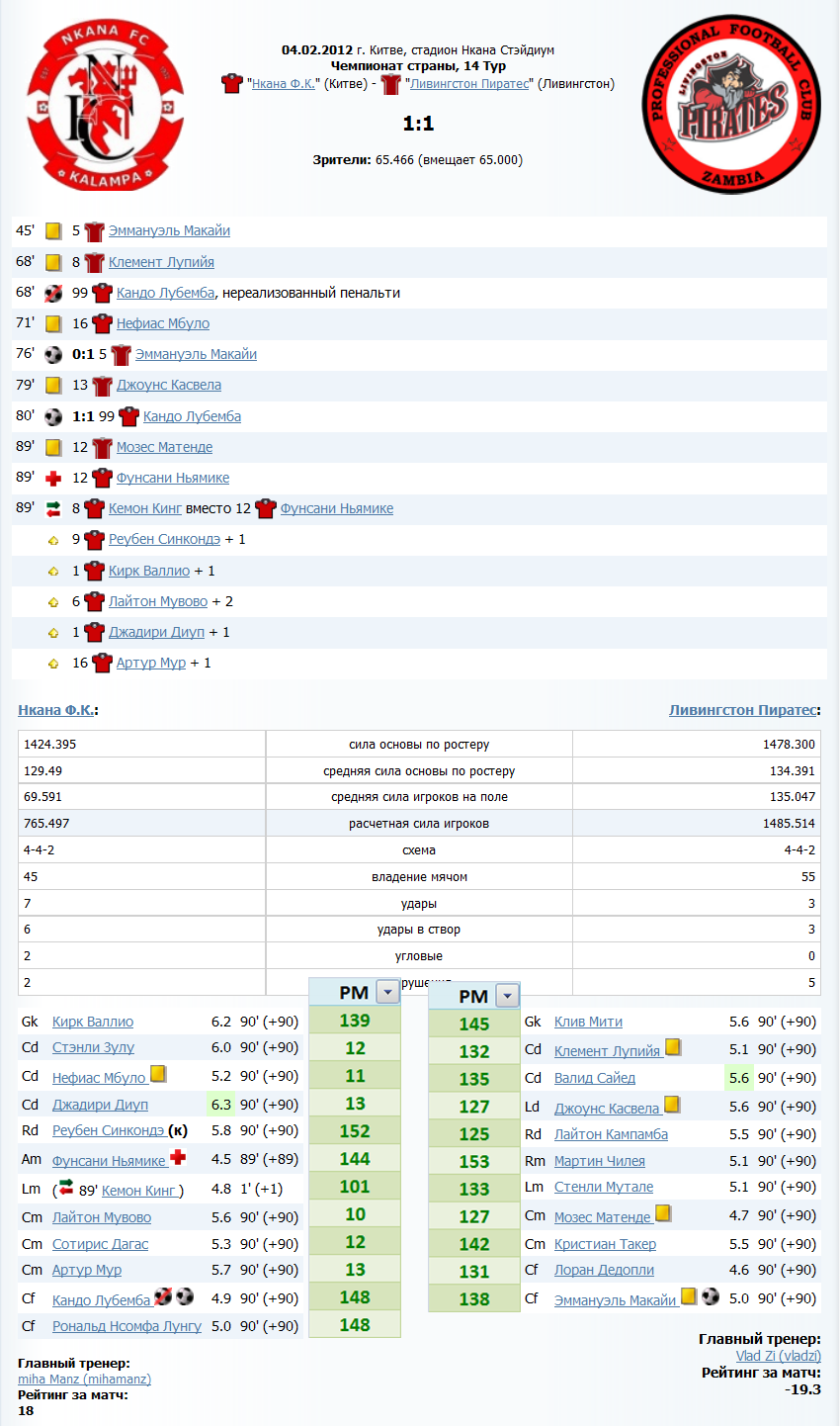 Нкана Ф.К. 1:1 Ливингстон Пиратес