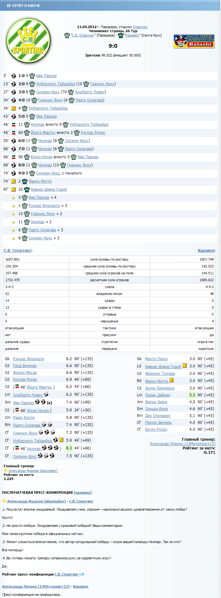С.В. Спортинг 9:0 Каравел